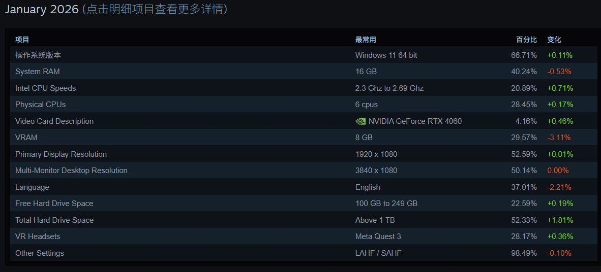 Steam 2026年1月硬件调查:RTX 4060 登顶 RTX 3060三年霸主地位终结