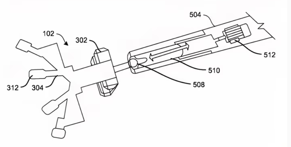 从公布的专利设计图来看,奔驰在座椅头枕内部设计了一个可隐藏的小型机械臂。当按摩功能启动时,机械臂会从头枕内部探出,利用按摩探头实现按摩功能。