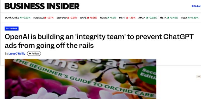 OpenAI组建广告诚信团队 护航ChatGPT广告业务落地