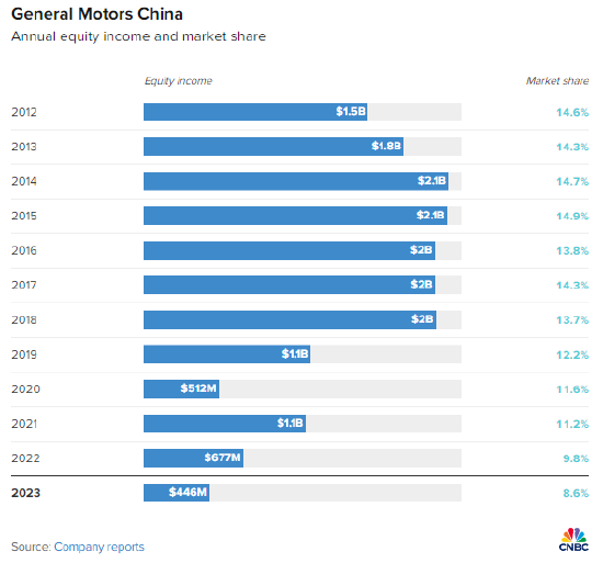 通用汽车曾在 2010 年至 2023 年期间,将中国作为其最大的销售市场,但它并未做好应对中国本土汽车产业崛起的准备。随着中国汽车制造能力的提升,通用汽车在华年利润从 2018 年的约 20 亿美元,一路下滑至 2025 年,连续第二年出现亏损。
