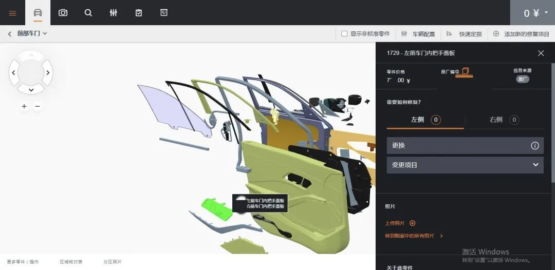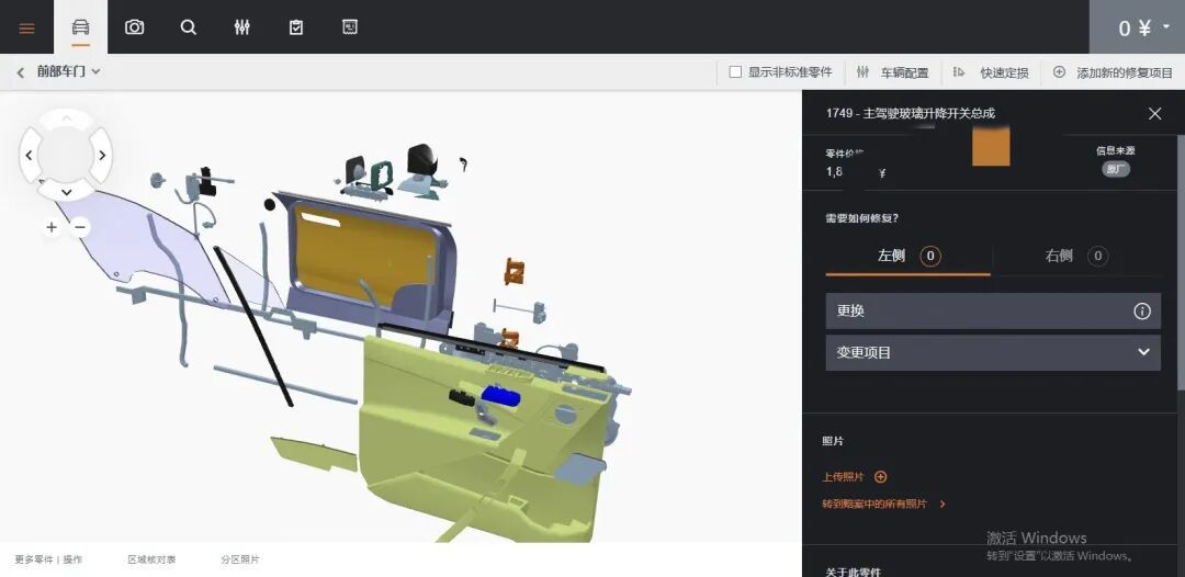 这是脖子哥找某豪华品牌售后拿到的维修系统后台数据,其开门按键与车窗升降总成绑定在一块,一换就一整个,价格轻松上千。