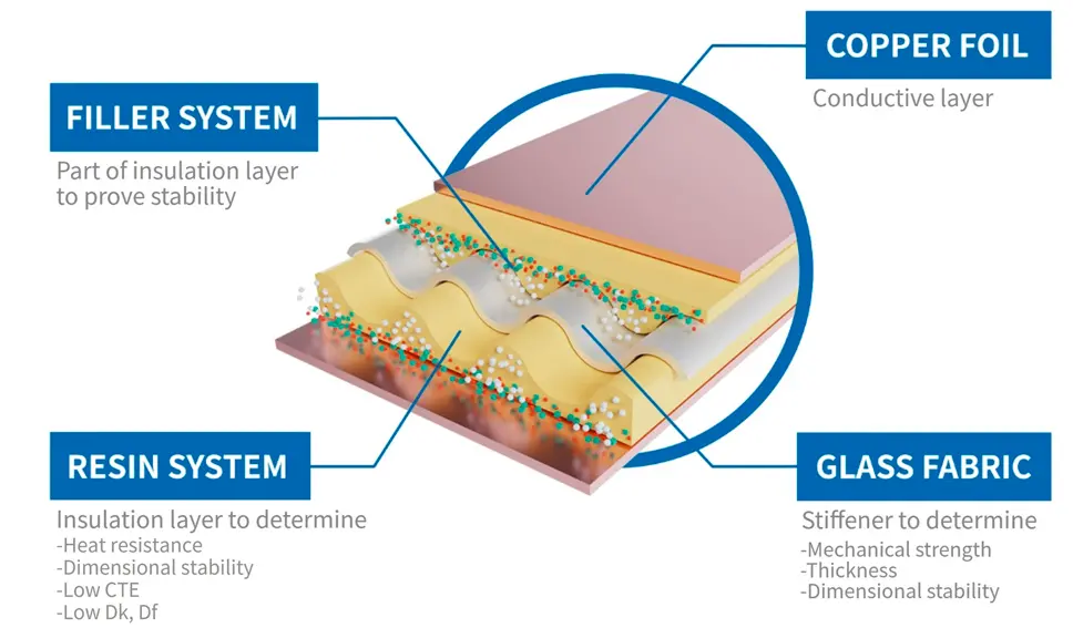 由于制造覆铜箔层压板(CCL)时,主要是用铜箔和非导电复合材料(如T-glass、环氧树脂)热压而成,因此T-glass可说是CCL的关键原料。同时,CCL又是PCB的核心基材,负责建构PCB的骨架使其形成导电层,让电路板上的各个电子元件能够相互连接和通电。