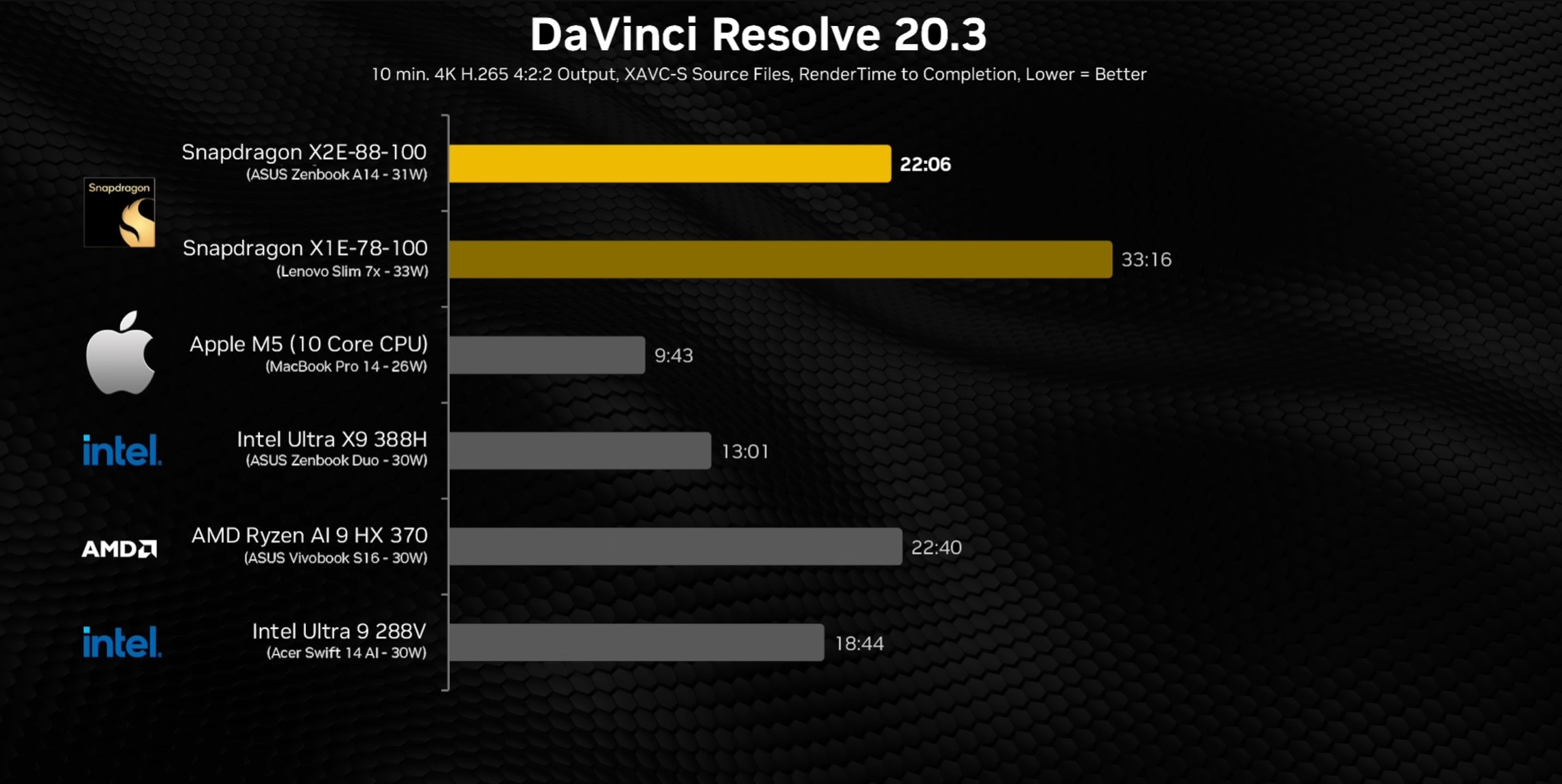 骁龙X2 Elite - 146(比骁龙X Elite快35.2%)
