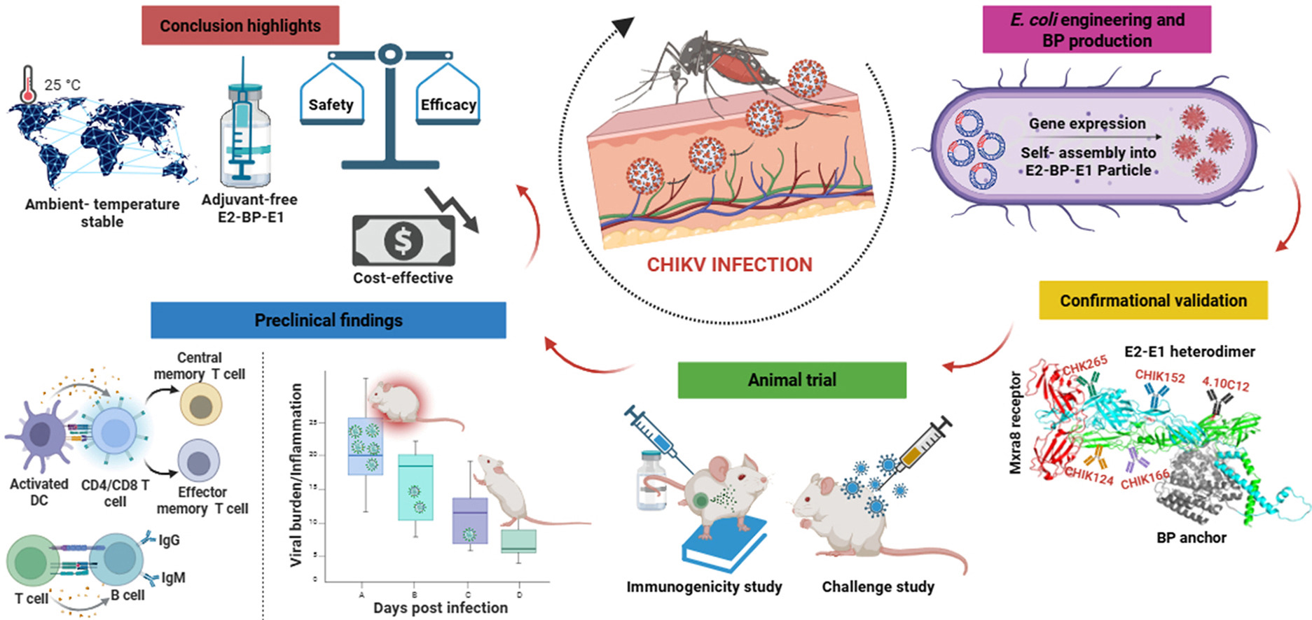 这一候选疫苗使用的是不含佐剂的合成生物高分子颗粒(E2‑BP‑E1),在结构上高度模拟真实病毒颗粒,同时又不会引发疾病。实验结果显示,这种颗粒能够诱导强烈的免疫反应,关键免疫细胞可以迅速摄取并处理其携带的抗原,从而启动并塑造针对基孔肯雅病毒的保护性免疫应答。研究人员指出,正是这种“以假乱真”的表面模拟,使机体既能像面对真实病毒那样作出反应,又避免了感染本身的危害。