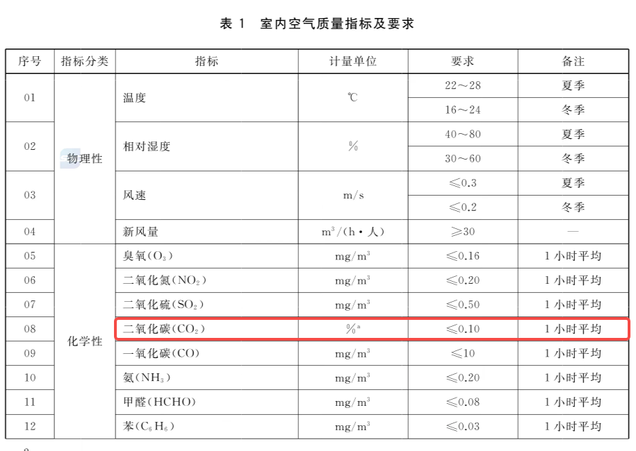 前者要求二氧化碳浓度不得超过 1500ppm。
