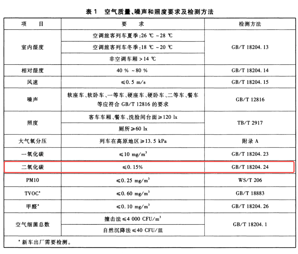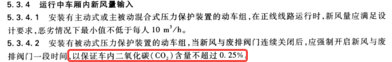 我们也找到了关于高铁的二氧化碳浓度控制标准:分别是 TB/T 1932-2014《 旅客列车卫生及检测技术规定 》以及 TB/T 3493-2017《 铁道车辆空调 空调压力保护装置 》,