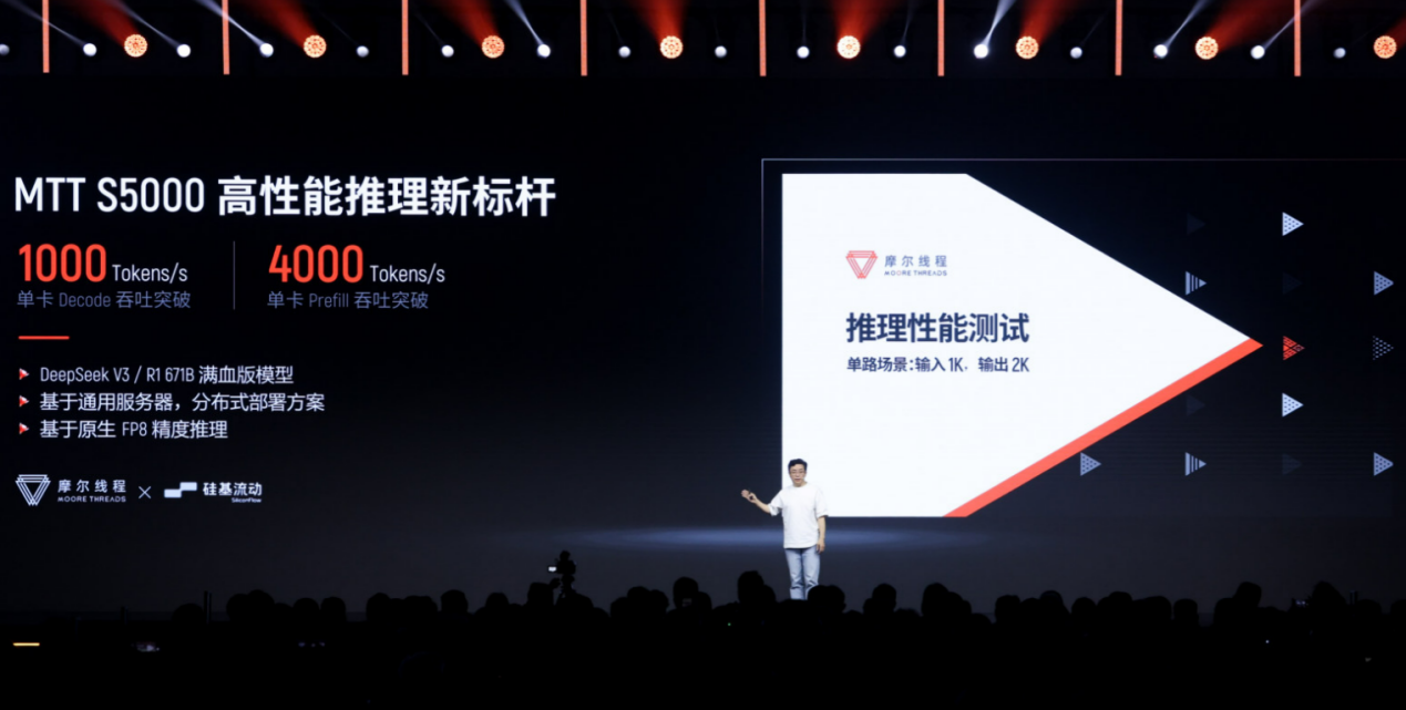 MTT S5000在推理场景同样表现优异,比如在2025年12月,摩尔线程联合硅基流动基于MTT S5000完成了对DeepSeek-V3 671B满血版的深度适配与性能测试。