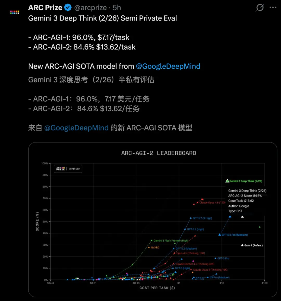 ARC-AGI-2:达到了前所未有的84.6%,并获得ARC奖项基金会的验证;