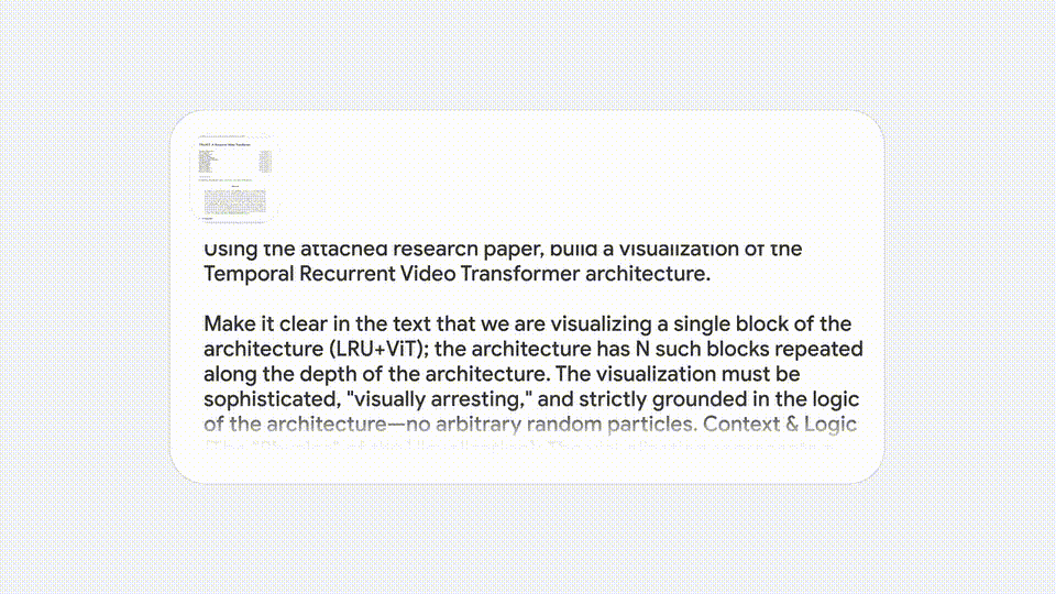 官方演示中,Gemini 3 Deep Think可以根据论文,为“时空循环视频Transformer”架构创建一个的视化方案。