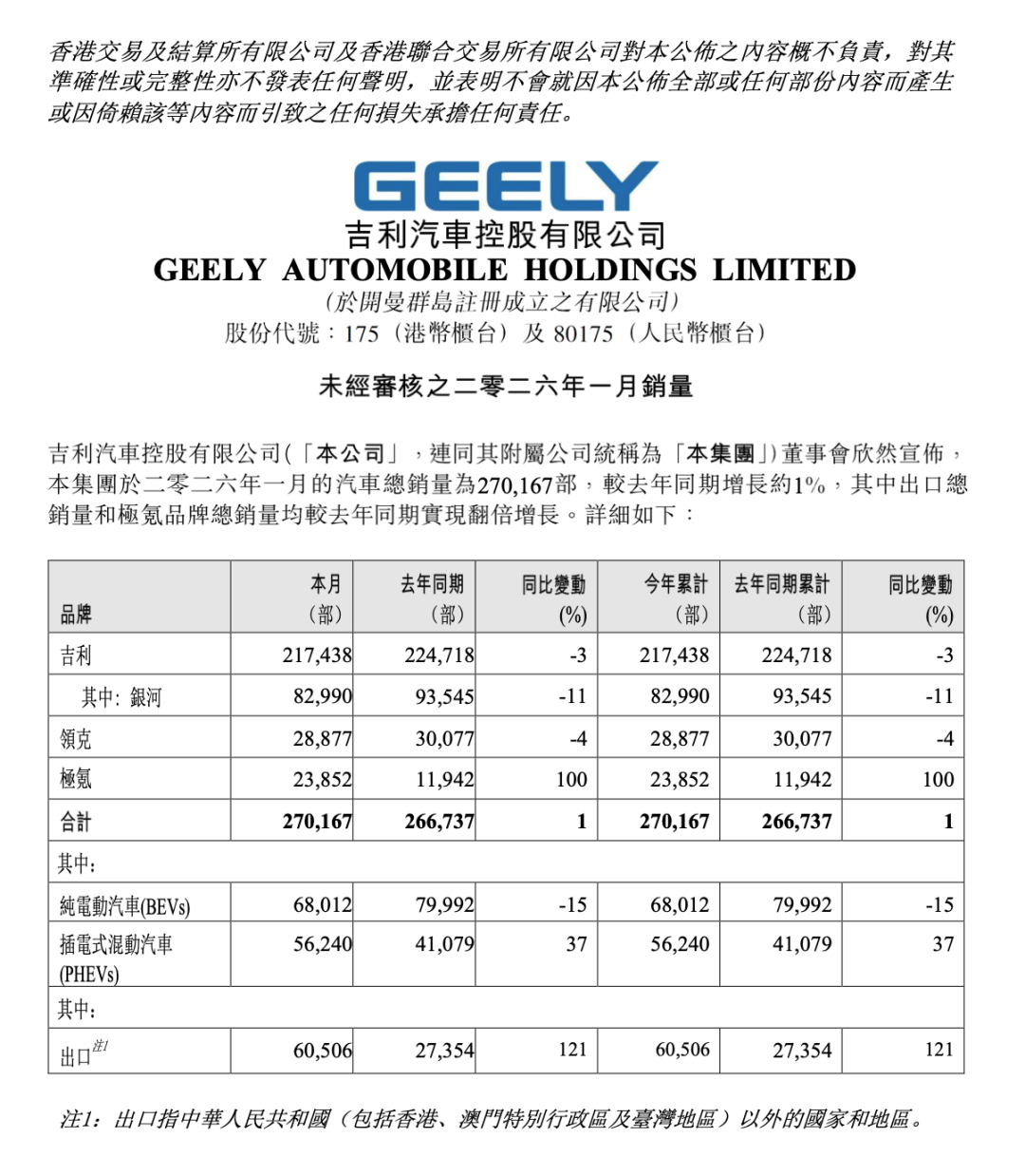 具体来看,吉利汽车集团 1 月乘用车销量达 27 万辆,同比增长 1%,环比增长 14%,成为中国自主品牌销量第一,也是唯一一个同环比双增长的车企。其中,新能源汽车销量达 12.4 万辆,渗透率 46%,其余销量则由燃油车支撑。