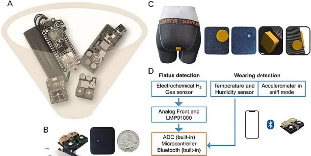 原来,科学家最新发明了一种便捷且能实时追踪“屁”的仪器——可穿戴式测屁仪。