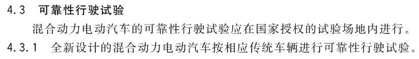脖子哥顺手就翻了下,对于混动车型,有个 GB/T 19750-2005《混合动力电动汽车定型试验规程》,里面说了可靠性试验和跟着传统车型走,也就是同样的 3 万公里。