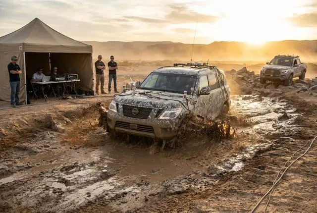 完了之后,车子要再跑砂石路、灰尘路和高环,甚至还要去盐水池、泥浆池这些地方。