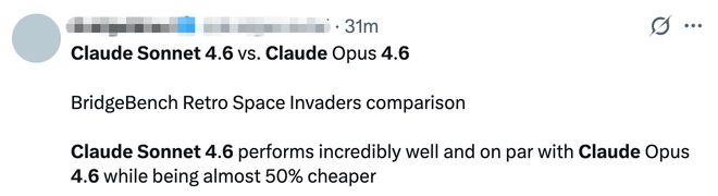 一位海外开发者称:“Claude Sonnet 4.6以更低的成本实现了接近Opus的智能水平,这意义非凡,适用于预算有限的团队。”另一位网友称:“Anthropic的真正策略已显露:Opus争夺王座,Sonnet蚕食市场。”