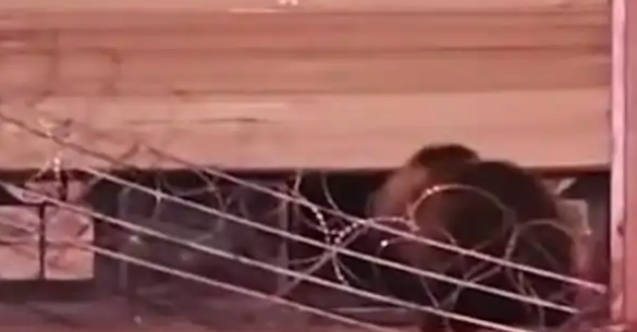 其中一只黑熊体型与成年人相当,先用力拍打卷帘门,另一只随后加入,两只熊连撕带拽将卷帘门掀起缺口后钻进店内,直到巡逻车途经,黑熊才受惊逃离。