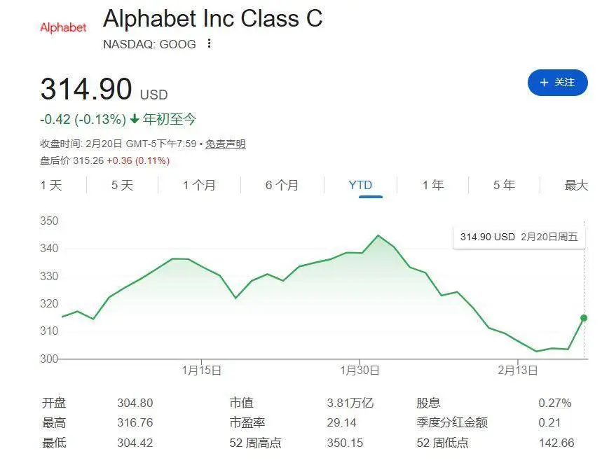尽管Google近期的表现已优于其他科技巨头,但年初至今股价仍是下跌状态。