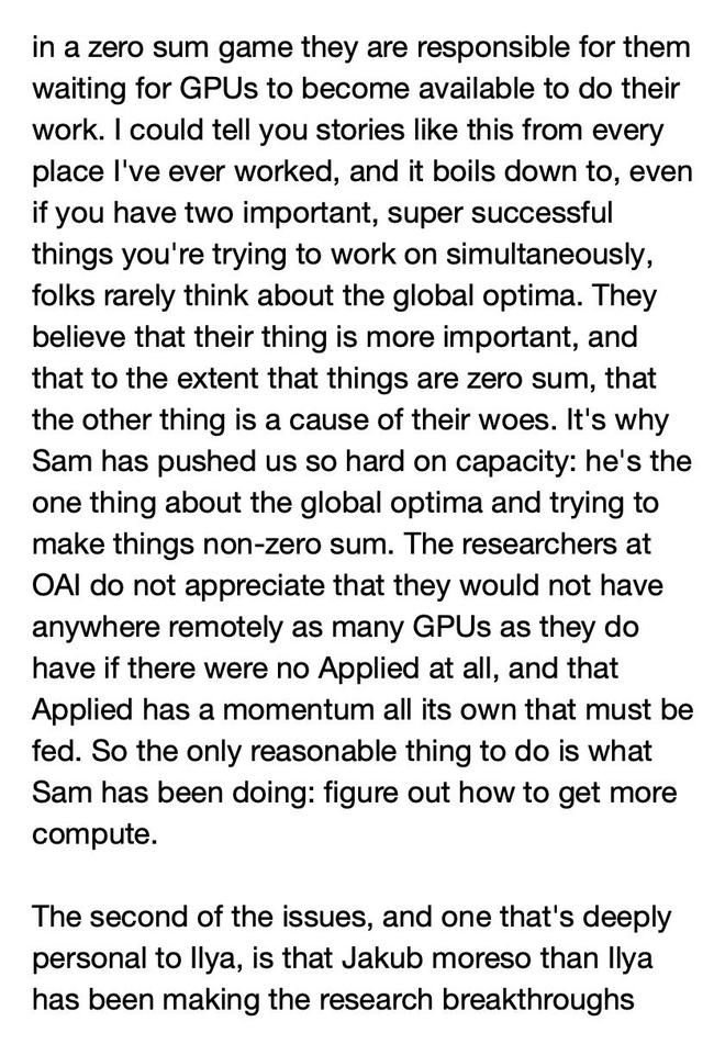 第一个问题,是研究部门和应用部门之间关于计算资源(GPU)的争夺;第二个问题,是Jakub职务的晋升。