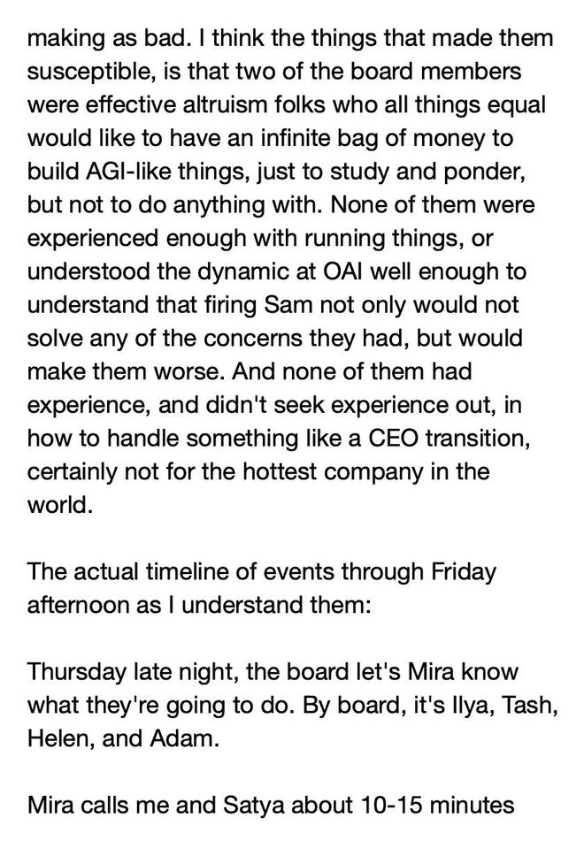 他利用自己对董事会的影响力,使他们接受了自己的说法,于是奥特曼被解雇了。