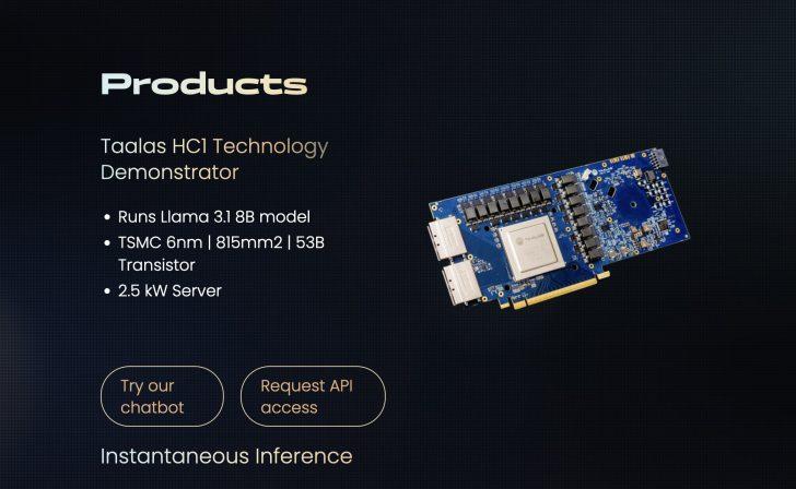 首发芯片 HC1 蚀刻的是 Llama 3.1 8B 版,也就是这颗芯片从流片开始就只能使用这个模型,而目前 AI 行业发展速度极快,各种新模型层出不穷,这种不可更改和升级模型的做法就是最大的劣势。