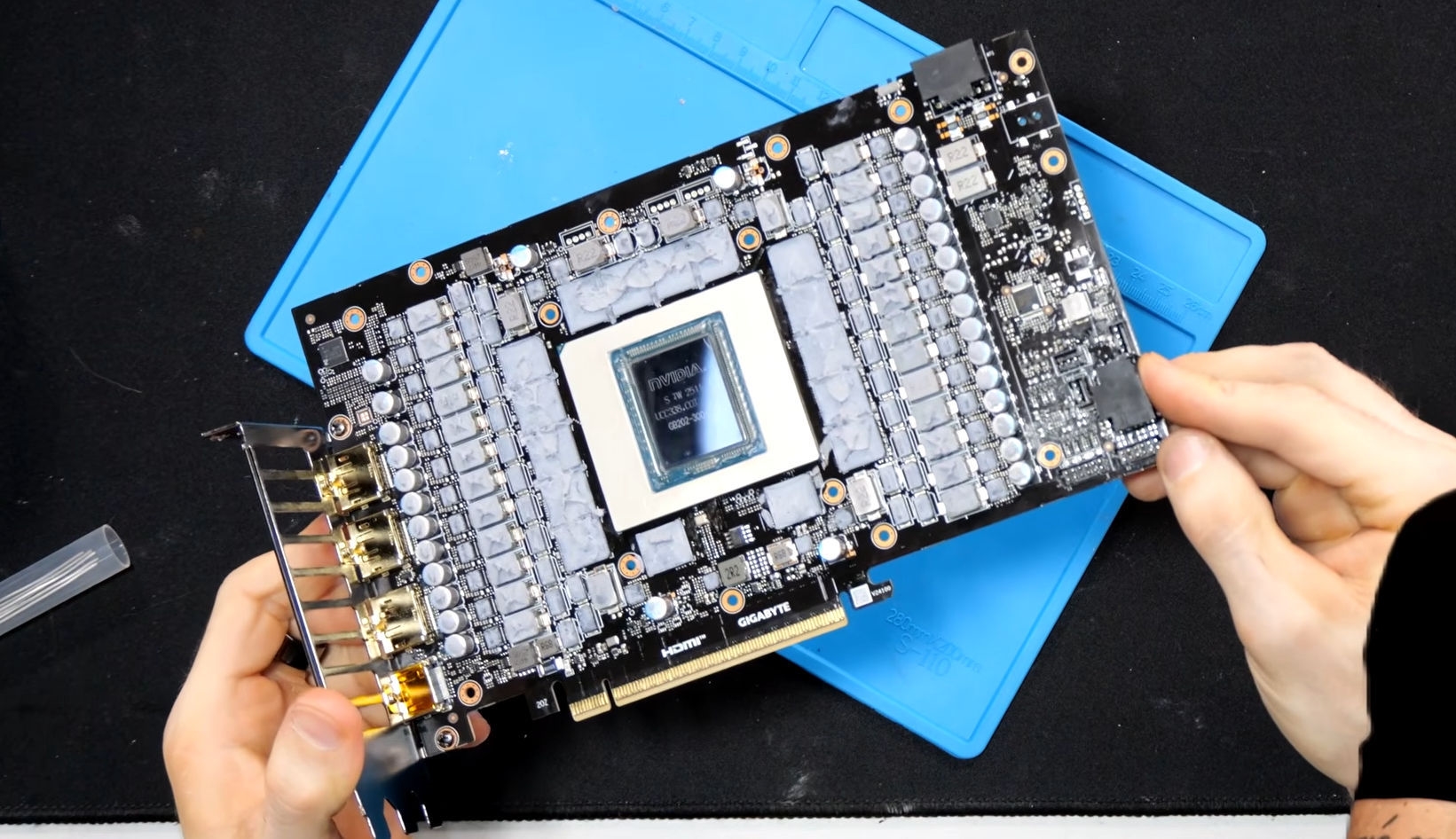 12V-2x6 16针供电接口虽然有最大600W供电能力,不过一些旗舰显卡还是整了两个。Uniko's Hardware更是大胆动手,为一款技嘉RTX 5090超级雕增加了第二个16针供电接口,用于极限超频。