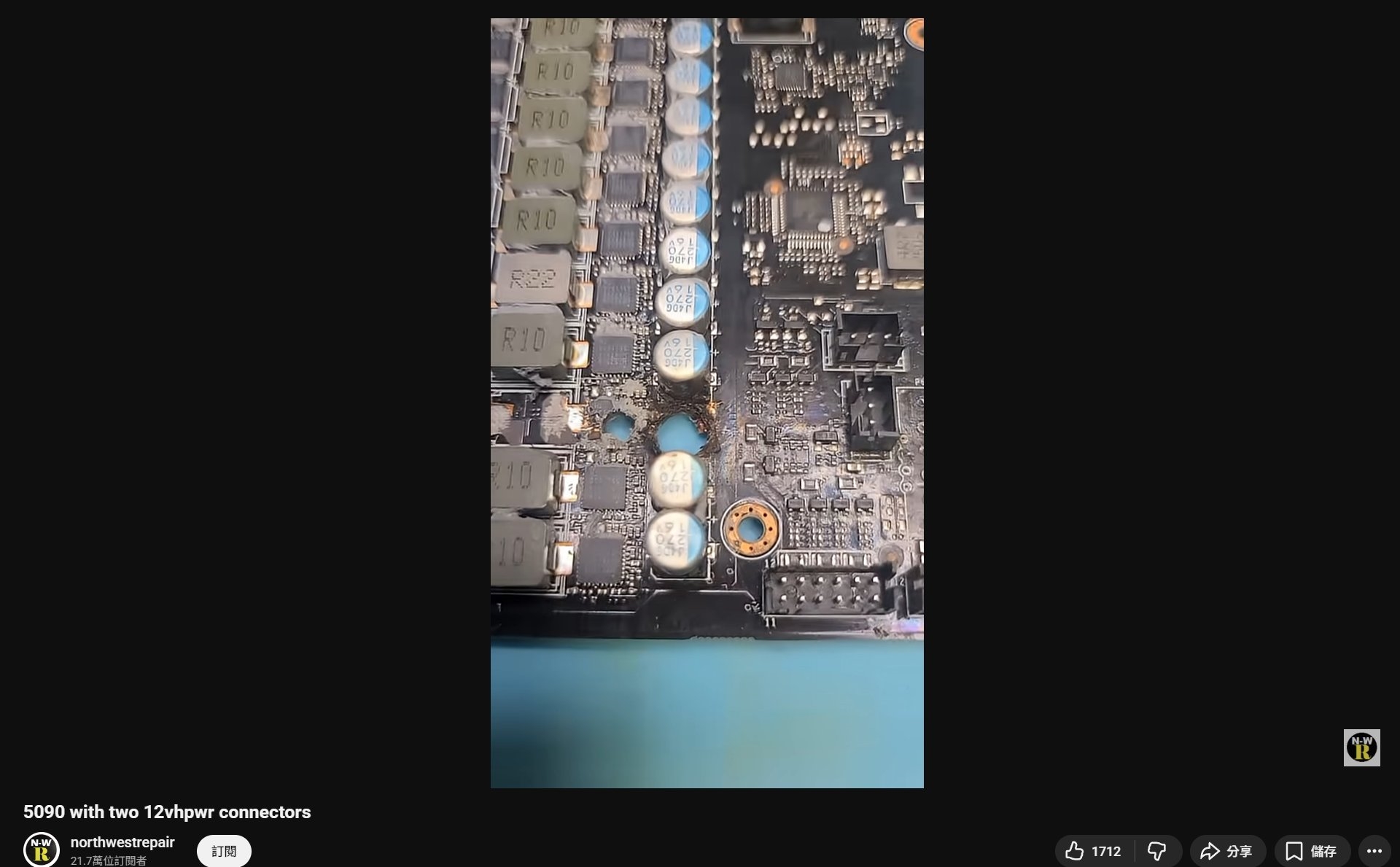 RTX 5090魔改增加第二个16针供电接口 第二天卒