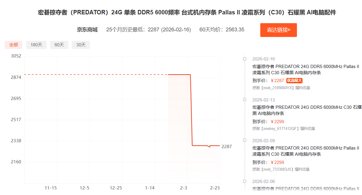 DDR5内存开始降价了