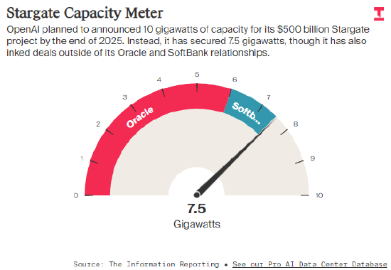 当年特朗普总统在 2025 年 1 月宣布耗资 5000 亿美元的星门 AI 数据中心项目时,负责开发的三家企业曾承诺以闪电般速度推进 —— 立刻投入 1000 亿美元,新建总算力达 10 吉瓦的数据中心。