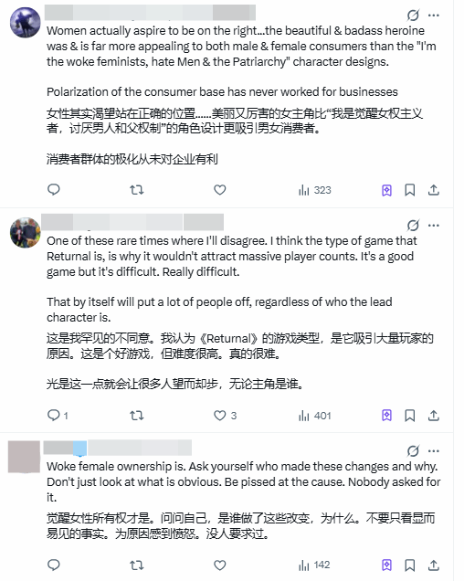 该博主在发布对比图时言辞犀利,直言:“丑化女性角色正在毁灭游戏业。如果《死亡回归》拥有一个漂亮、性感的主角,它原本能卖出更多的PS5主机。”