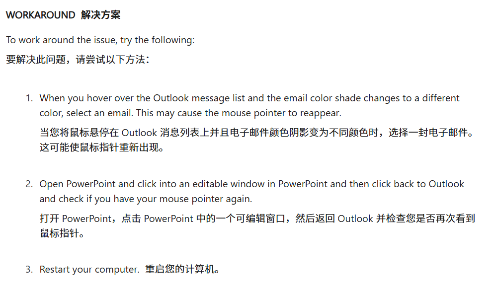 Outlook奇怪Bug致鼠标消失 而微软官方的解决方案更奇怪