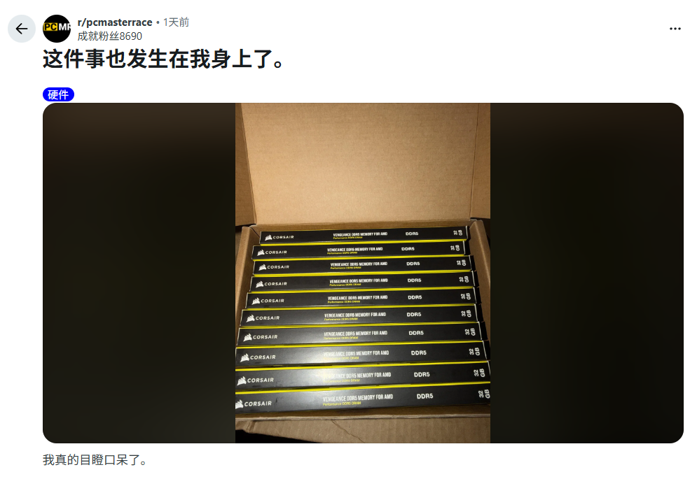 网友网购一条32GB DDR5内存 打开包裹竟收到十条