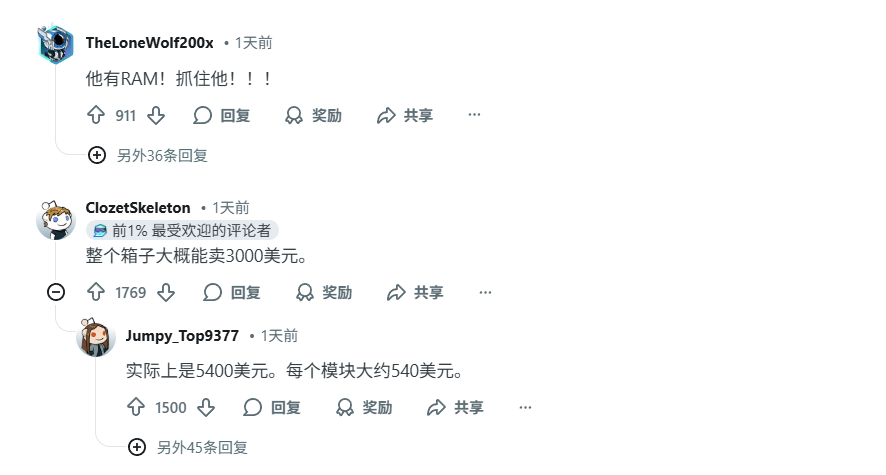 不少网友好奇,这位幸运儿会如何处理这十条内存条。他表示,计划以低于零售价的合理价格出售多余的内存,既不浪费,也能让有需要的人受益。