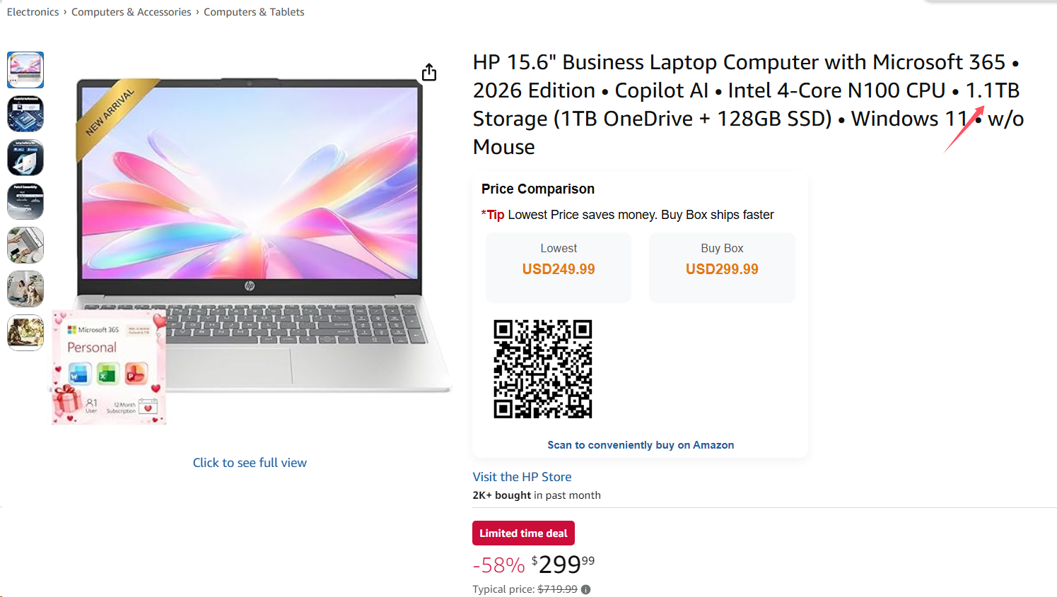 近期有消费者曝光,在亚马逊等电商平台出现不少笔记本电脑涉嫌虚标存储容量,其标题显眼地标注着1.1TB或1.2TB的超大存储容量。对于不熟悉硬件的普通消费者来说,看到1.2TB大容量与低廉售价时,极易误以为设备搭载超大本地硬盘,从而心动下单。