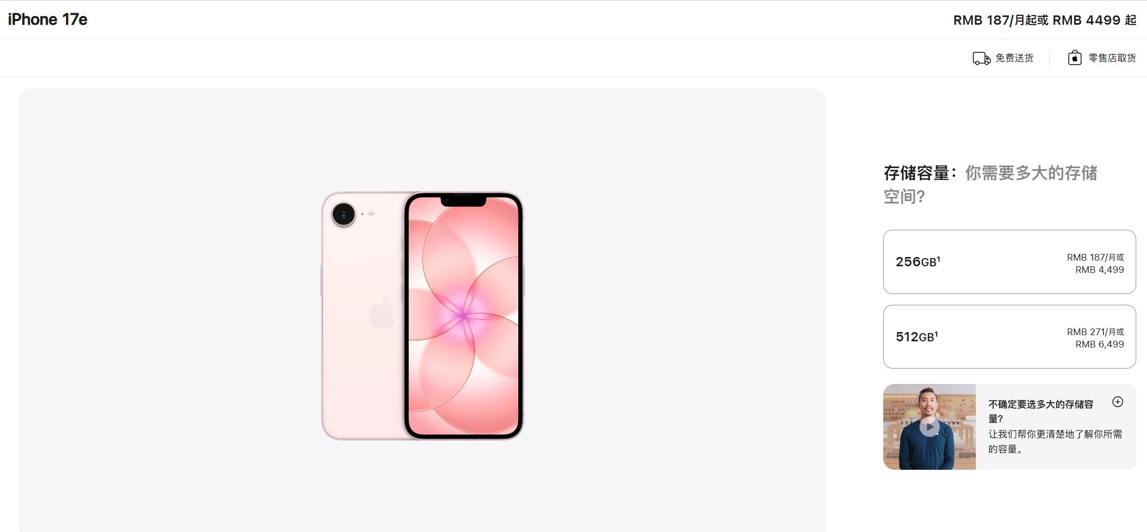 此外,iPhone 17e在起步存储容量上显得更加大方,直接从256GB起步。在外观配色上,苹果还加入了一款清新的浅粉色,并首次在该机型上支持了MagSafe磁吸充电功能。