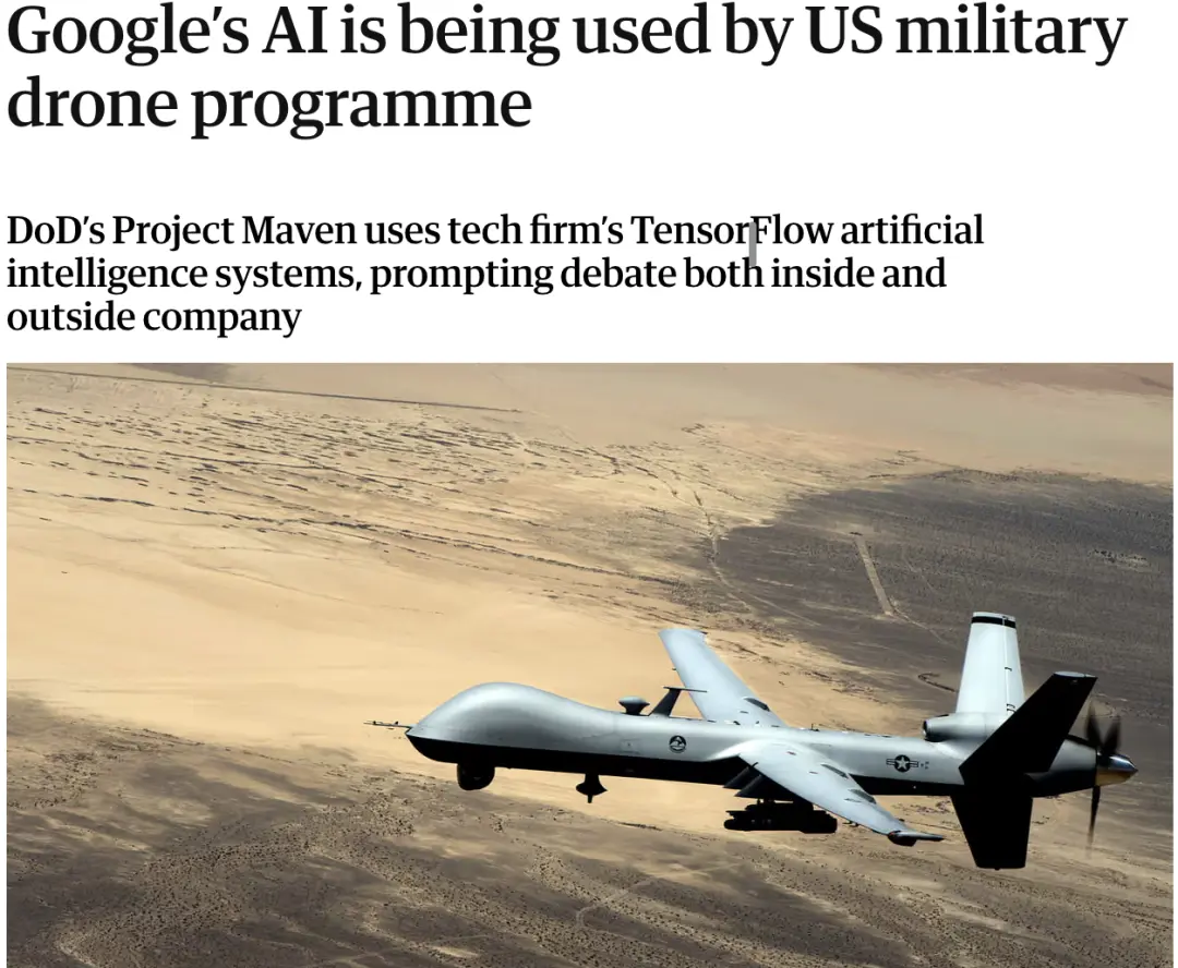 2018年,Google在围绕智能无人机Project Maven合同时,就玩过类似的公关把戏。