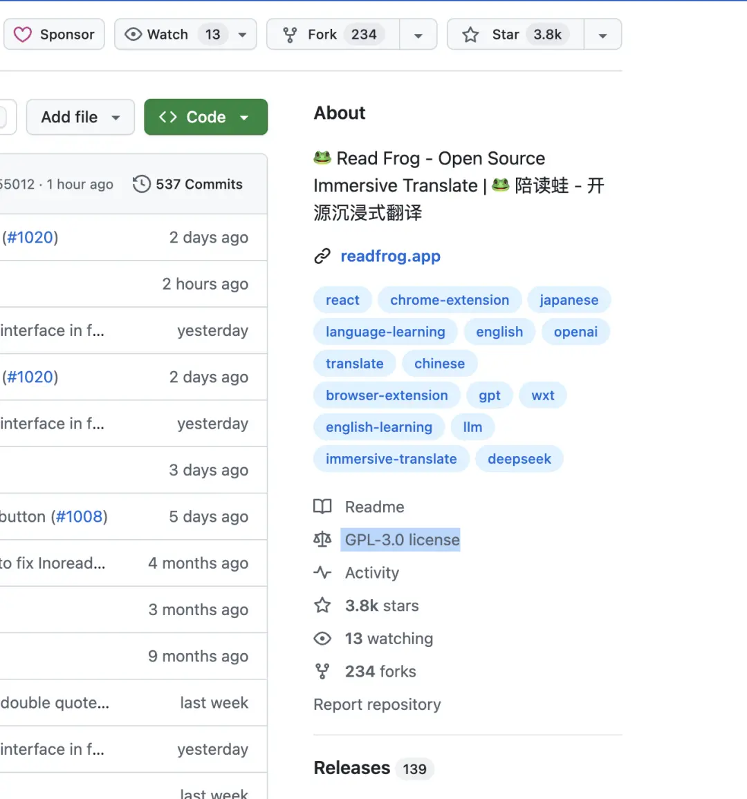 而另一方,则是一个名为 陪读蛙(Read Frog) 的独立开源项目,背后站着一位默默耕耘的独立开发者。