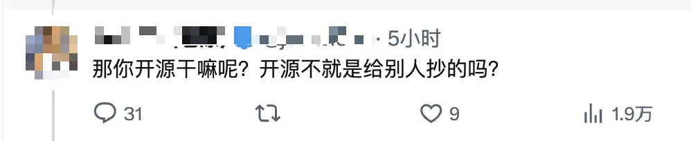 这恐怕是中文互联网上对开源最深的误解,也是国内开源生态最悲哀的注脚。
