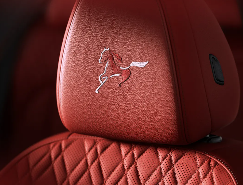 前排座椅的马年专属刺绣标识由宝马集团Designworks上海设计团队打造,设计灵感源自敦煌壁画中的“神马”形象,细腻勾勒出马的肌理与灵动姿态,为驾乘体验赋予“马若乘空”的美好意境。