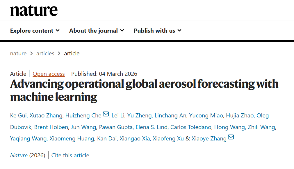 据“中国气象”公众号消息,今日,由我国科学家牵头的全球首个气溶胶预报人工智能模型AI—GAMFS在国际学术期刊《自然》发布。
