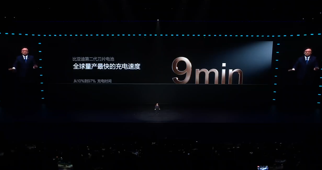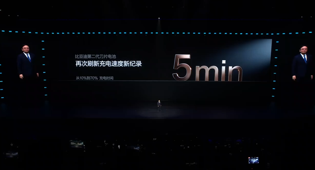 比亚迪今日晚间举办第二代刀片电池暨闪充技术发布会。会上,比亚迪董事长王传福宣布,比亚迪正式发布第二代刀片电池,彻底终结电动车充电慢、低温充电时间长等行业难题。王传福表示,比亚迪第二代刀片电池从10%充至70%,只需5分钟,和加油速度一样快;从10%充至97%,只需9分钟,创下全球量产最快的充电速度。