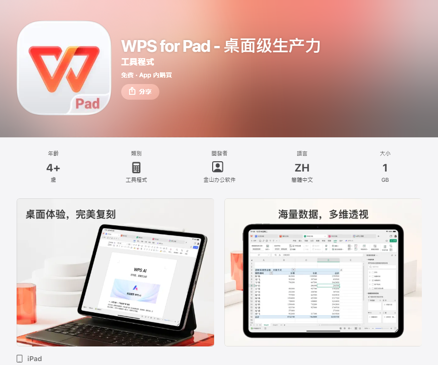 金山WPS for Pad正式版上架苹果App Store港区 完美复刻桌面体验