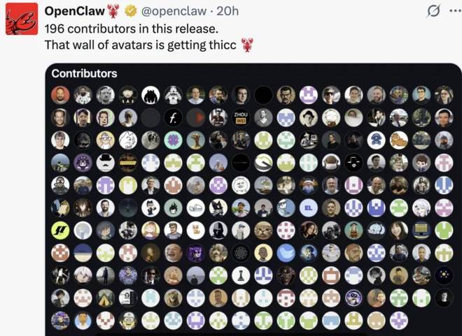 而这些只是此次更新的部分内容,更多详细信息,大家可以去 GitHub 上获取。正如 OpenClaw 在更新贴文中所言,“此次发布的背后包含了 196 位贡献者”,涉及多方面的更新。