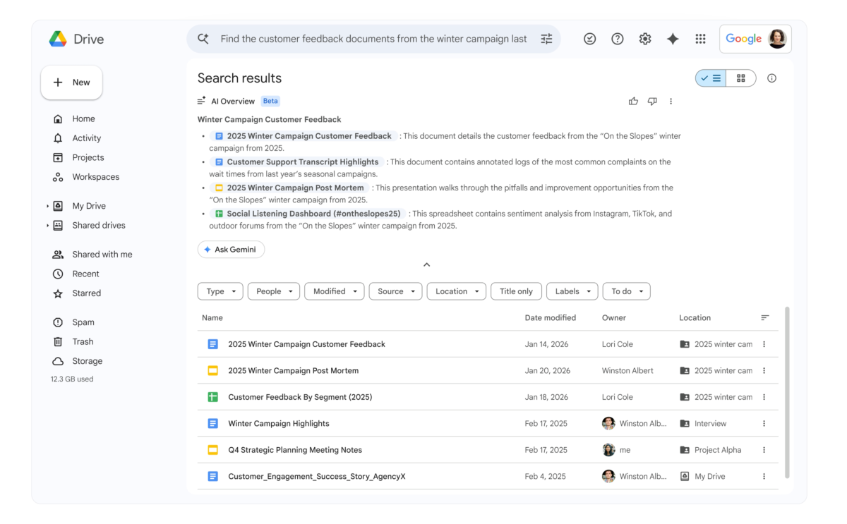 Google为Docs、Sheets、Slides和Drive上线新一代Gemini功能