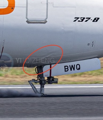 另有照片显示,涉事客机前起落架上方的机身已出现褶皱,因为飞机客舱需保持气密性,因此机身的修复难度也随之增大。