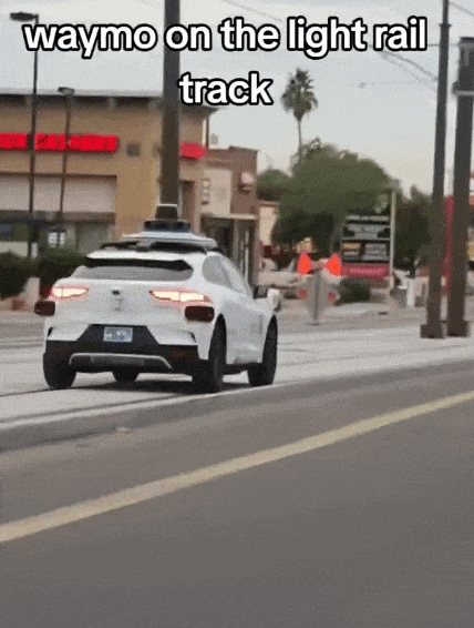 今年年初,1辆Waymo无人车被拍到在铁轨上行驶。