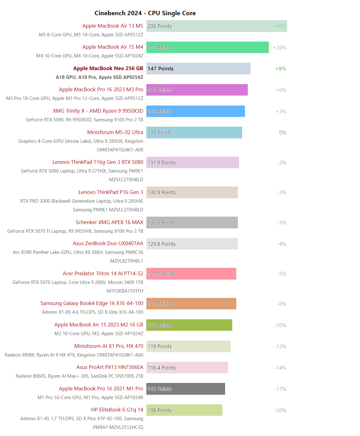 MacBook Neo单核性能封神:AMD、Intel、高通集体败北