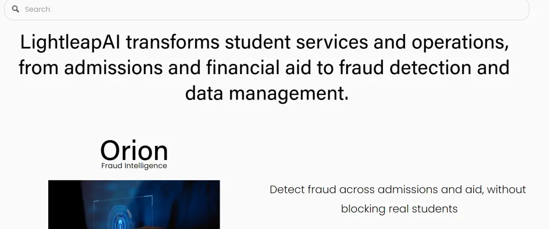 而重灾区加利福尼亚州也是AI发展的前沿,做的是用AI来查AI,用一款叫LightLeap.AI的AI系统检测欺诈行为。这款系统的网站主页如下图