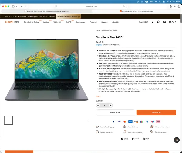 官网宣传页面,“搭载7430U处理器”的CoreBook Plus笔记本
