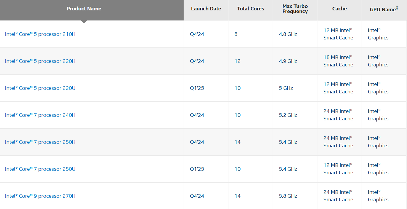 事实上,现在的第一代和第二代酷睿系列,本质上都源于Raptor Lake 14代酷睿,都只有移动版本,规格偏低。