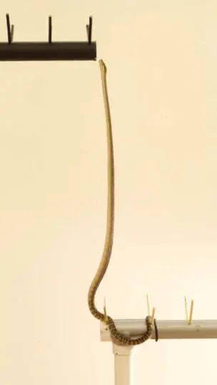 相比于抬起身体,其实保持垂直会更加困难,保持这种姿态高度依赖蛇本体的感觉,当蛇开始向任何方向下坠时,它都必须立马感知到,并重新调整为垂直。