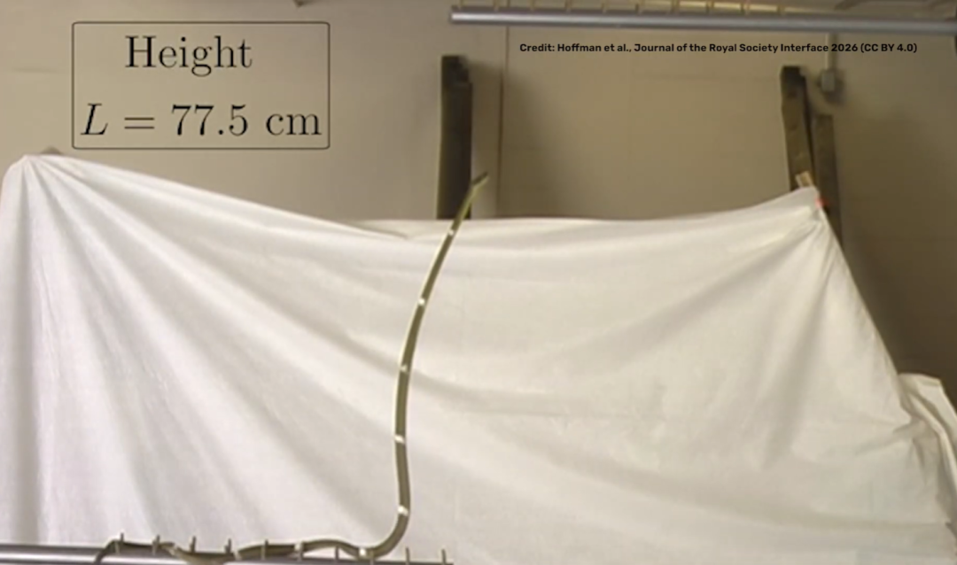 而蛇在直立的时候,靠近支撑点的基部会形成一个小角度的弯曲,这种微小的几何调整能有效抵消重力产生的扭矩,从而使上方大部分身体能保持近乎完美的笔直。